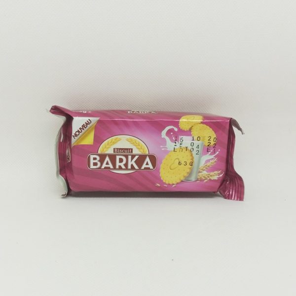 Barka est un biscuit fait à base de la farine de blé, de sucre, huile végétale comestible, matière sèche du lait, amidon, poudre à lever, sel, arôme lait, émulsifiants et de colorant alimentaires autorisés.
