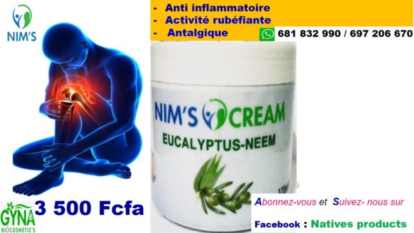 Nim’s Cream est une pommade anti inflammatoire qui remédie et traite les maux musculaires, articulaire et rhumatismes. Il agit correctement par simples massages réguliers sur les parties douloureuses matin et soir .